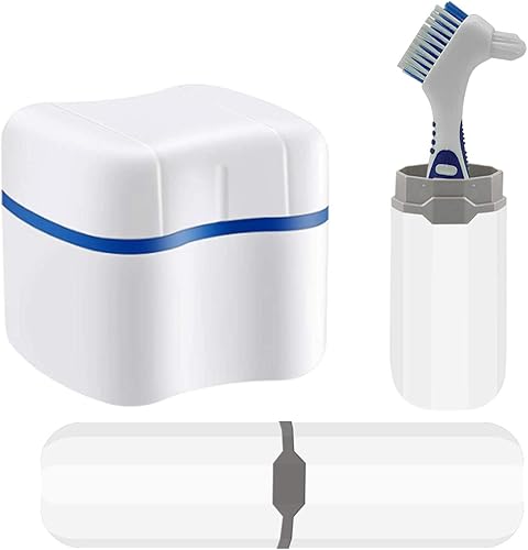 Denture Cup Kit, 2 Denture Case with 2 Denture Toothbrush & 2 Portable Toothbrush Box, Denture Cups for Soaking Dentures, Denture Cleaning Kit for Travel