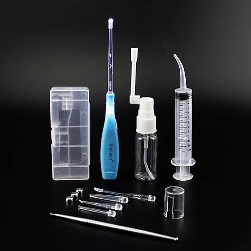 Upgraded 6.75" Tonsillith Pick Tonsil Stone Remover Tool Care, Blue + Cleaning Irrigator Syringe + Stainless Steel Pick + Throat Nose Nasal Mist Pump Bottle