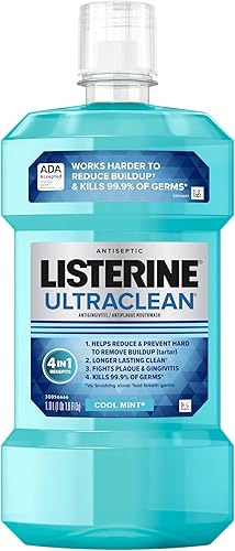 Listerine Ultraclean Oral Care Antiseptic Mouthwash, Everfresh Technology to Help Fight Bad Breath, Gingivitis, Plaque & Tartar, ADA-Accepted Tartar Control Oral Rinse, Cool Mint, 1 L