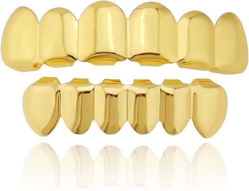 Braces Upper 8 Lower 8 Men and Women 18k Gold-Plated Upper Teeth Lower Teeth, Gold dentures, Gold Eight-Tooth Lower Teeth (Real Gold Plating)