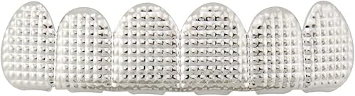 Real Gold Plated concave Lattice Texture Braces Large Gold Teeth for Men and Women, Silver Upper Teeth