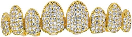 Braces Micro Inlaid Zirconium 8 Teeth Decorative Gold Plated Diamond Braces, Gold (Upper Teeth)