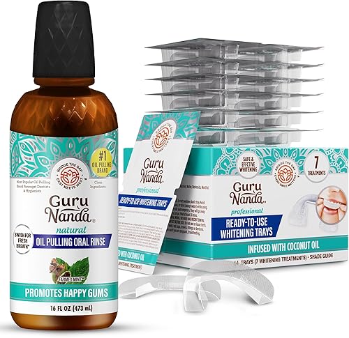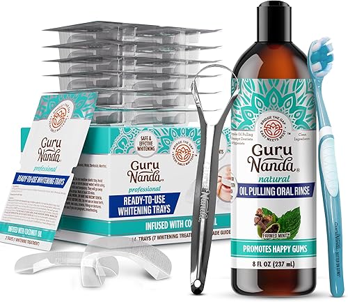 GuruNanda Complete Whitening Kit – 7-Day Whitening Trays + CocoMint Oil Pulling 16 Oz for Enhanced Oral Care, for Deep Clean, Fresh Breath & Brighter Teeth