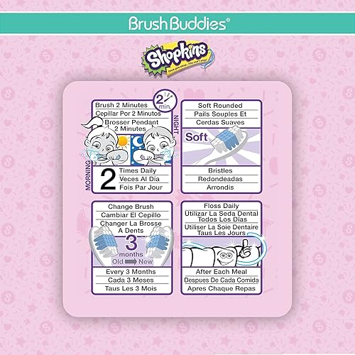 [What's Included] The Brush Buddies Shopkins Manual Toothbrush Pack includes 2 multi-colored Shopkins kid's toothbrushes.