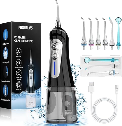 【A Performance Water Dental Flosser Model】NBGRLVS water dental pick adopts advanced water pulse technology. Cordless oral irrigator delivers high water pressure pulses at 2000-2300 times per minute and water pressure of 30-130 PSI,effectively removes plaque, massages the gums and promotes blood circulation. Deeply clean teeth , whiten Teeth and Improve Gum Health.