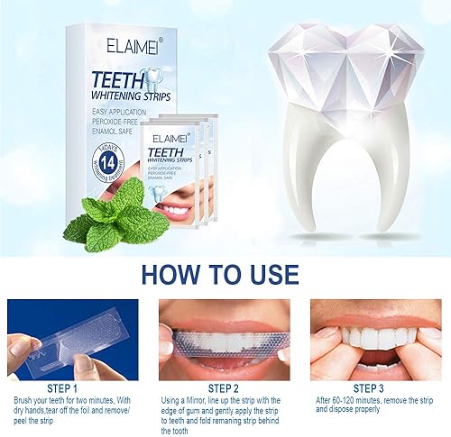 【Easy to Use】 Professional sealing technology, does not affect daily life, the process without any discomfort. Whitening strips are not easy to fall off when attached to teeth