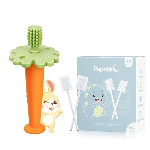 • Effective, Gentle Cleaning: Equipped with 360˚ soft bristles, this carrot silicone baby toothbrush provides thorough cleaning that reaches all surfaces of your baby’s teeth.