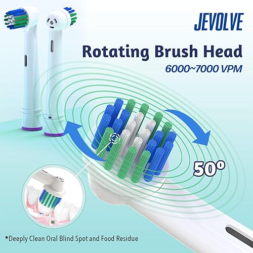 • TWO BRUSH HEADS FOR OPTIMAL COVERAGE AND EFFICIENCY: The JEVOLVE toothbrush comes with two replaceable brush heads to ensure maximum hygiene and convenience. With its rotating action, each brush head efficiently removes plaque and cleans between teeth, helping maintain fresh breath and a healthy smile.