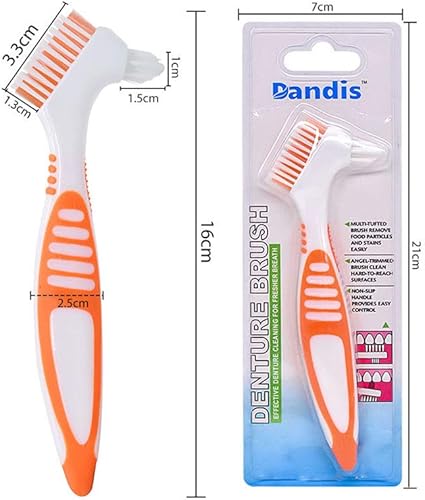 3.Double head design for comprehensive cleaning of dentures:Wide head makes cleaning easier by gently and effectively cleaning outer denture surfaces,tapered brush to reach denture gaps, for effortless, efficient dental cleaning.