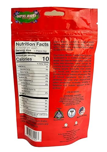 RELIEVES DRY MOUTH SYMPTOMS – The Cotton Mouth Candy formula was developed by a traditional Martial Arts Master who learned that certain roots and herbs help stimulate saliva. The all natural ingredients that are used penetrate the body when eaten and help to increase saliva production, bringing a balanced and holistic approach to the problems that exist with dry mouth.
