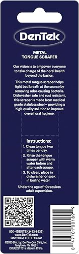 Eliminates bad breath at the source: For fresh breath and a daily boost of confidence, add tongue scraping to your oral hygiene routine; our DenTek metal tongue scraper for adults easily removes bacteria that cause odor and other problems in the mouth