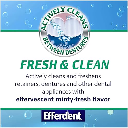 Efferdent Fresh & Clean Minty Fresh denture and retainer cleaning tablets use powerful oxi-action to remove stubborn stains in hard-to-reach places