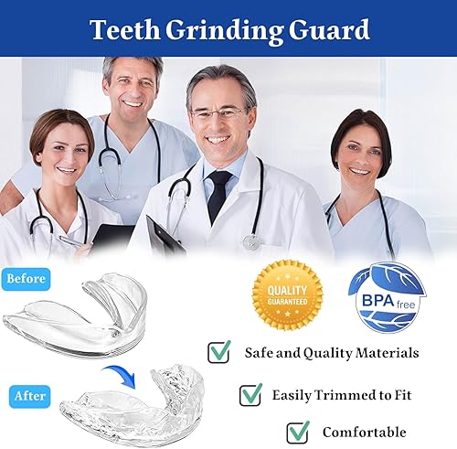 Customized Fit: Night guards for teeth grinding are made of moldable material that can be shaped to achieve a tight, secure fit regardless of the size of the user's mouth