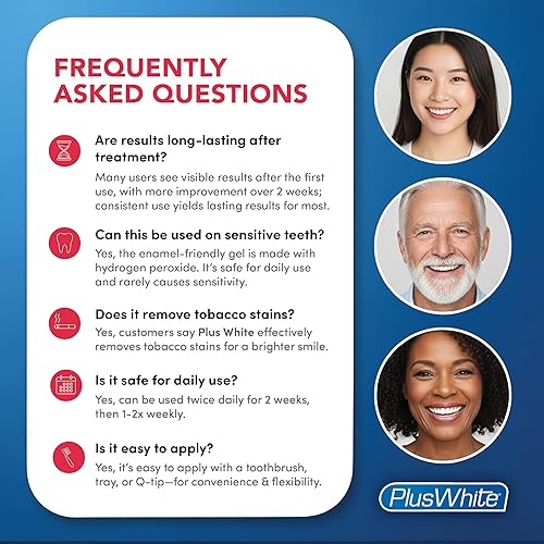Simple Use & Application - Plus White's 5 Minute Whitening Gel is an unflavored, simple and convenient at fast acting home method with proven bleaching power to whiten and brighten teeth in just 5 minutes. Simply squeeze onto your application method - toothbrush, mouth tray or q-tip - and then follow the directions on the box. Get precise application with our needle nose tube to finally say goodbye to frustrating whitening strips and mouthpieces