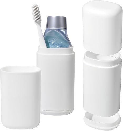 2-IN-1 MULTIFUNCTIONAL USE: The removable lid doubles as a convenient toothbrush cup with a smooth and comfortable edge for easy brushing on the go. The travel toothbrush holder saves space and reduces weight