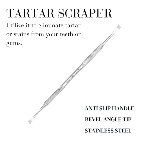 Professional-Grade Tools: Achieve dentist-quality clean at home with our precision-crafted Dental Mirror, Dental Scaler, Plaque Scraper/Remover, and Tooth Pick, all made from high-quality stainless steel.