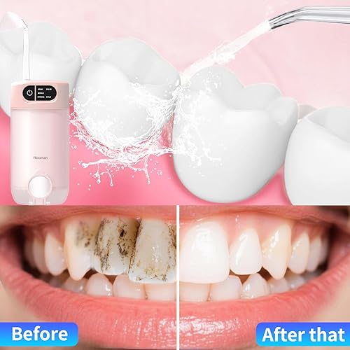 【5 Nozzles and 5 Cleaning Modes】the Rooman Water Toothpick Comes with 5 Nozzles and Offers 5 Water Pressure Modes: Weak, Medium, Strong, Pulsing and Kids, Perfect for Everyone in the Family. Whether You're Managing Braces, Implants, Or Sensitive Gums, This Water Dental Flosser Is Sure to Satisfy Your Needs, And It Has a Memory Function That Lets You Continue to Use Your Favorite Mode Next Time