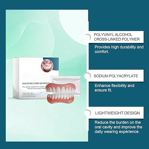 COMPLETE SET: Includes both upper and lower dentures made with durable polyvinyl alcohol polymer for long-lasting daily wear