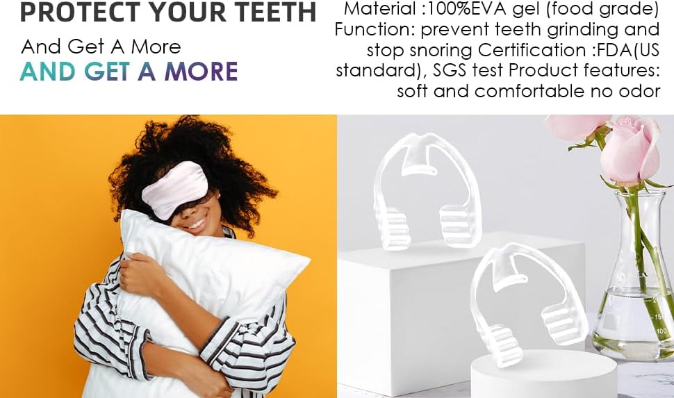 Protective Design: This dental teeth grinding guard has an anti-shedding design, strong adsorption ability and more stable when worn, in addition to an anti-swallowing hook-like design, which can avoid the risk of accidental swallowing to the greatest extent, so that you can use it with more confidence.