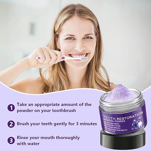 【Easy to Use】Teeth restoration mineral powder is simple to use, just wet your toothbrush, take an appropriate amount of tooth powder, and then gently brush your toothbrush as usual for 3 minutes, and finally rinse with water. Enjoy a convenient and effective way to enhance your oral care habits.