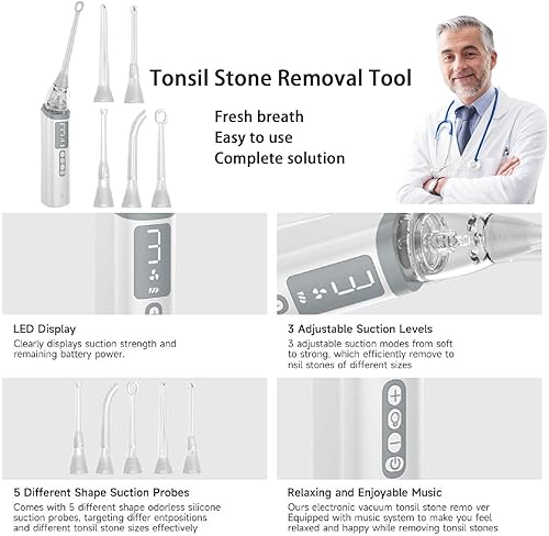 【Effortless and Painless Operation】The tonsil stone vacuum remover comes with a detailed instruction manual. Using advanced vacuum adsorption technology, it enables you to remove tonsil stones quickly, easily, and painlessly. Bid farewell to the unhygienic and cumbersome methods of using hands or traditional tools to squeeze tonsil stones.