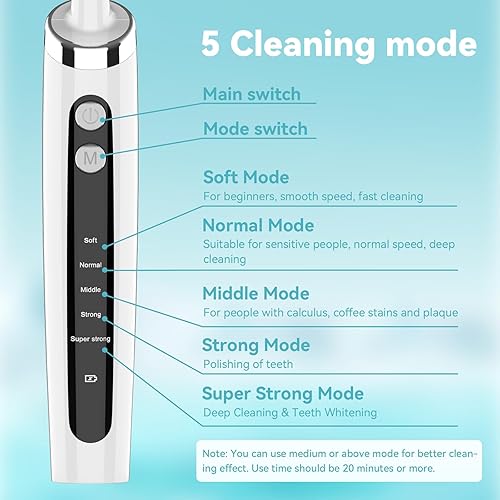 【Waterproof & 5 Adjustable Modes】 Tooth polishing kit is IPX6 waterproof, which makes it safer to avoid water and electricity contact when brushing teeth. There are many different modes that can be selected according to individual needs. Some can adjust the vibration frequency and intensity, some can massage and deep clean, etc. These modes can help people better meet different oral needs