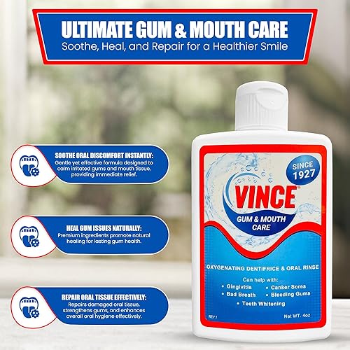 A POWERFUL FORMULA USED FOR OVER 70 YEARS - How do you know a product works well? When it has not changed in 70 years, yet its popularity continues to grow. Vince Oral Rinse was formulated in the late 1920’s, before oral care was a priority for many Americans. It has stood the test of time because the proprietary formula is effective at helping to address most oral issues! Clearly, Vince Oral Rinse delivers great oral care, and healthy teeth and gums.