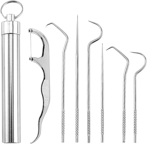 Stainless Steel Dental Pick Kit 7-Pack with Holder
