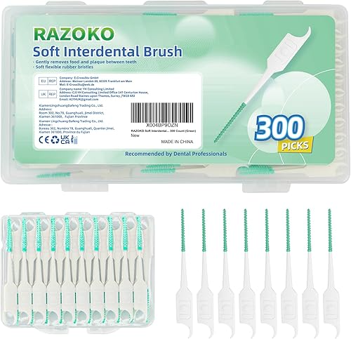 RAZOKO Soft Interdental Brushes 300ct - Dental Picks with Case