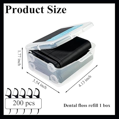 Black Dental Floss Picks (200 Count) | Travel Case Included