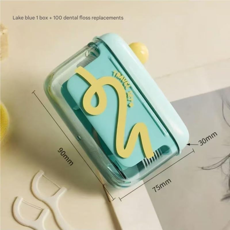 Refillable Dental Floss Pick Dispenser with 50 Picks (Blue)