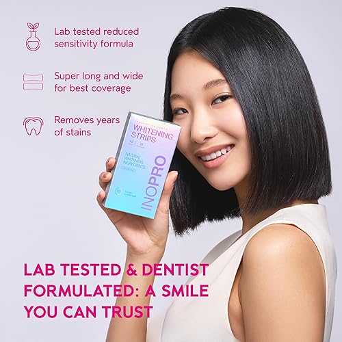 Gentle, Natural Whitening for Sensitive Smiles: Achieve a brighter smile in just 14 days with zero harsh chemicals. Our transparent Inopro Whitening Strips use only natural ingredients like sea salt, lemon peel oil, coconut oil, papain, and bromelain, which work gently to remove stains without damaging enamel or causing sensitivity. Perfect for those with sensitive teeth who seek effective, natural whitening.