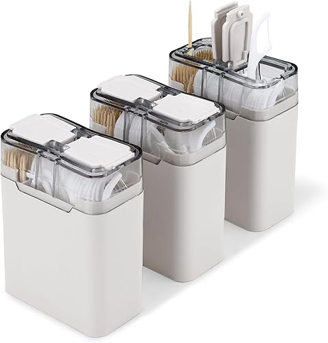 【2 in 1】This toothpick holder comes with 2 storage compartments with separate lids, which can be used as a toothpick holder dispenser and a floss holder for different teeth cleaning needs. The thickened tooth pick holder is sturdy and not easy to wear and tear, and the body is smooth and rounded, safe to use.