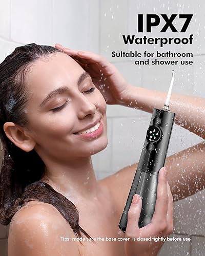 IPX7 Waterproof & Durable: Bezvoi portable water flosser has an IPX7 waterproof rating for safe shower use. Its upgraded motor provides stable water pulses for efficient plaque removal. Multiple cleaning modes cater to men, women, and seniors, ensuring a gentle yet effective experience. (Ensure the silicone cover on the charging port is securely closed during shower use.)
