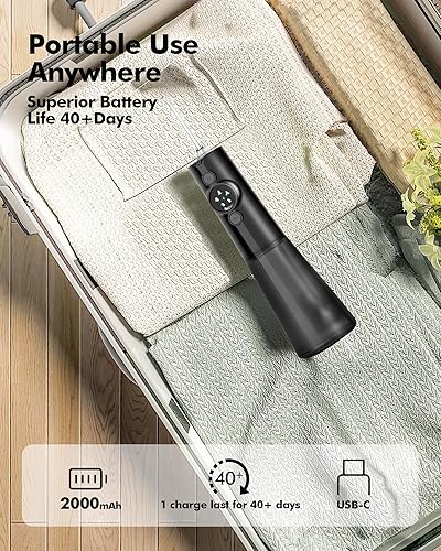 40-Day Long Battery Life: Bezvoi cordless water flosser is equipped with a 2000mAh battery that lasts up to 40 days. It includes a USB-C charging cable (without a 5V 1A adapter) and requires no dedicated charger, enhancing charging convenience. The lightweight and portable design makes it easy to store in luggage or backpacks, making it an ideal oral care companion for travelers, business travelers, vacationers, or frequent commuters