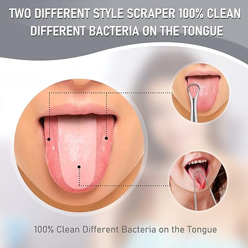2 DIFFERENT STYLE SCRAPER: Two different style tongue scraper can be selected ,making it can be combined and matched to 100% clean your tongue
