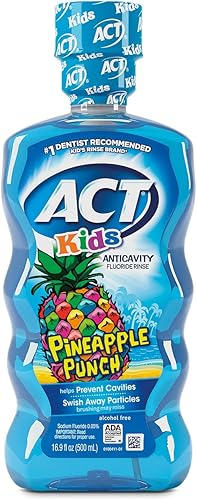 Contains one 16.9 fl. oz. bottle of ACT Kids Alcohol-free Anticavity Fluoride Rinse With Accurate Dosing Cup Pineapple Punch Flavor to help prevent cavities and strengthen teeth.