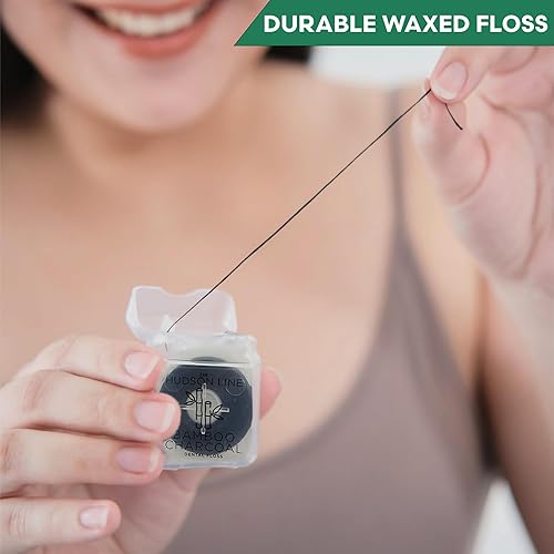 Charcoal-Infused Strength: Experience the benefits of charcoal dental floss. This black floss is infused with bamboo charcoal, providing superior plaque removal and offering a unique whitening floss experience for a brighter smile.