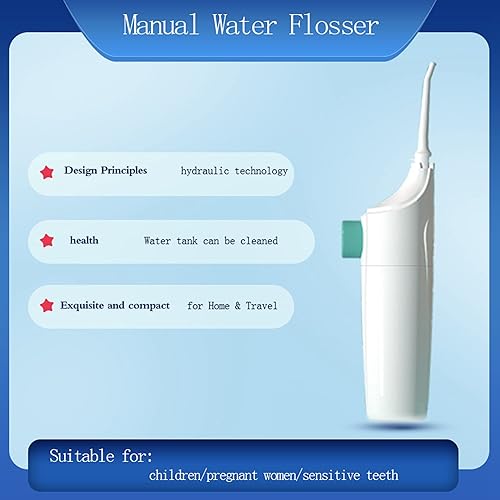 Simple design & easy to use : No electricity needed, manual stamping; Open the water inlet cover, pour water or mouthwash, and then close the cover. Just press the button to use.