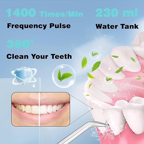 3 Modes 4 Nozzle:The water teeth cleaner pick has Soft,Pulse,Strong modes.Equipped with 4 interchangeable the nozzle are suitable for daily gum cleaning, periodontitis cleaning, braces cleaning, and tongue cleaning. meet your different daily oral care needs