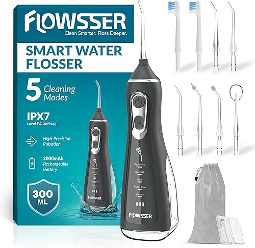 Advanced Deep Cleaning Technology: Flowsser's water picks for teeth cleaning and flossing use 1600–1800 pulses/min and 60–140 PSI to remove 99.9% of plaque and food debris. The pulsing water jet cleans deep between teeth and below the gumline—ideal for braces, implants, and daily care