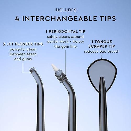 Dual-Mode Cleaning with Interchangeable Tips – Choose between Gentle or Deep Clean modes for a tailored experience. The cordless water pick includes 4 interchangeable 360° rotating tips to target teeth, gums, and tongue. Ideal for users with braces, veneers, or implants.
