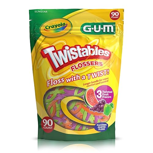 TWISTABLES FLOSS PICKS : Crayola Twistables floss sticks for kids feature a longer, twisted handle that makes it easy for small hands to reach both front & back teeth. Twisted dental floss flattens easily to slip between teeth for an ouch-free clean.