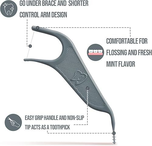【IMPROVES ORAL HEALTH】 Our dental flossers for braces to help keep gums and teeth healthy during your orthodontic treatment. The spatula end of this braces floss picks simply fits under your arch wire so you can floss like normal in between brackets. Great for on-the-go and after meals.