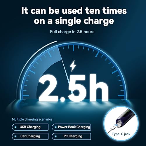 • USB portable charging: Teeth Polisher Electric Professional is Type-C socket USB charging, can be applied to rechargeable batteries, car, PC side charging, charging once 2.5 hours, can be used more than 10 times