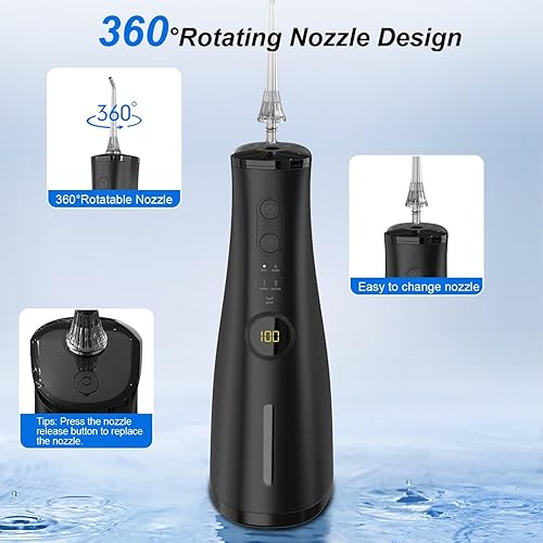 Convenient Design: Featuring a 300ml water tank for continuous use, this cordless dental flosser is perfect for home, office, travel, and outdoor activities.