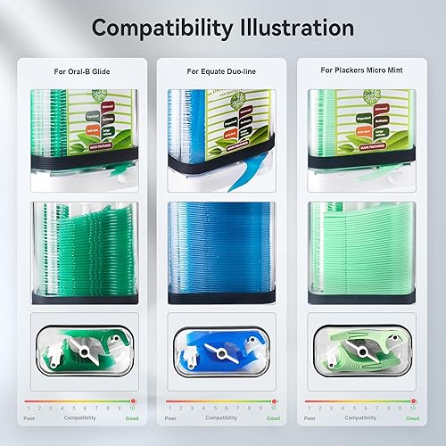Fits standard Dental Floss Picks: The tooth flosser holder measures 3.74” x 1.89” x 4.33” (L x W x H) to provide a suitable fit for standard large dental floss picks. The flosser dispenser organizer is compatible with Plackers Micro Mint Picks, Oral B Scope Glide Picks and Equate Duo Line Picks.