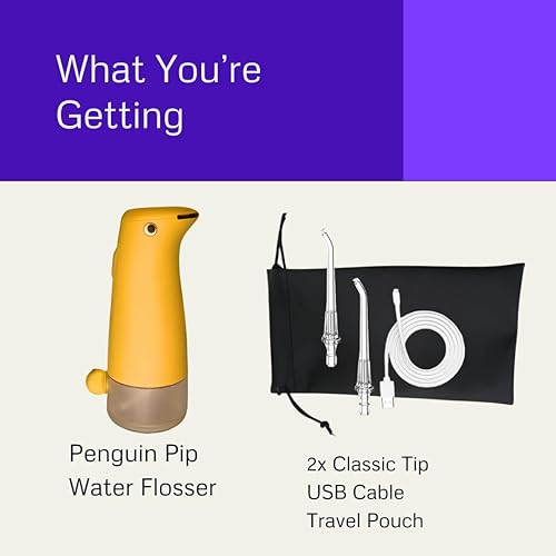 [One-Touch Operation, Memory Function, And Auto Shut-Off] Our Penguin Pip Water Flosser is designed with a one-touch button and a convenient memory function, making it incredibly user-friendly, even for small kids. The one-touch button allows for easy operation with just a single press, while the memory function ensures the flosser remembers the last used setting. Additionally, it features a 2-minute auto shut-off function, encouraging efficient brushing time and giving peace of mind. This simplicity means even the youngest family members can confidently and effectively use the flosser, promoting independent dental care from an early age.