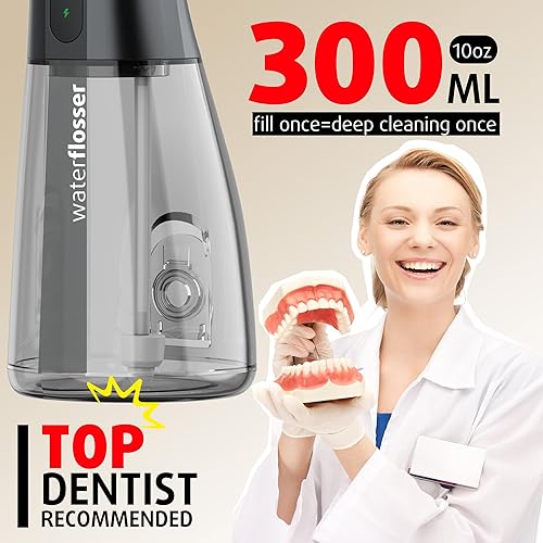 Special Feature: 300ML water dental flosser pick, 4 Jet Tips, 5 Operation Modes, Cordless, Rechargeable