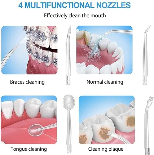 【Water flossers for Teeth】This water flosser has three modes: soft mode, normal mode, and pulse mode, with four 360 °rotating nozzles for further cleaning of the mouth